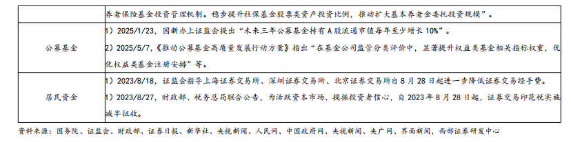 2024年924以来,监管推出各项政策鼓励各类资金入市,尤其是积极推动中长期资金入市。2025年7月,中央政治局会议指出“增强国内资本市场的吸引力和包容性,巩固资本市场回稳向好势头”,肯定了924以来资本市场的稳定上涨趋势;预计未来以保险资金为代表的中长期资金会持续流入资本市场,赚钱效应下主动权益基金资金净流入或继续扩张,居民资金也会以个人投资的方式持续流入股票市场,我们预计随着增量资金的继续入市,2026年A股市场的成交中枢将继续维持高位。