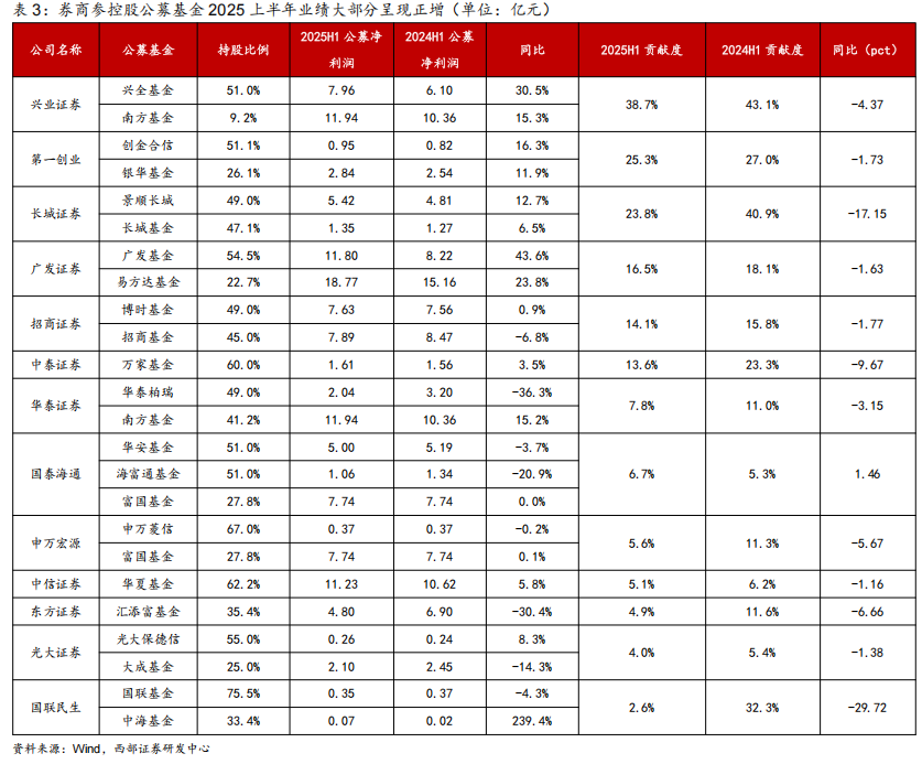权益型公募基金规模持续扩张,券商参控股公募表现分化。截至2025年9月末,据中国基金业协会数据,公募基金合计净值36.74万亿元,较年初增长11.9%,其中权益类基金合计净值10.27万亿元,较年初增长28.9%,份额和净值均有所增长。2025上半年公募基金板块的利润贡献占比有所下降,尤其对于以资管业务为特色和优势的券商影响更为突出,如长城证券、东方证券,公募利润贡献同比分别-17.15、-6.66pct;绝对值来看,样本券商公募基金利润整体仍保持正增长,利润贡献下降主要系券商业绩增长主要来源于自营和经纪。2025年5月,证监会发布《公募基金高质量发展行动方案》,9月公募基金三阶段费改正式落地,10月《公开募集证券投资基金业绩比较基准指引(征求意见稿)》发布,公募基金行业进入高质量发展阶段,我们认为未来随着权益市场持续复苏,资产管理业务景气度将恢复上行。