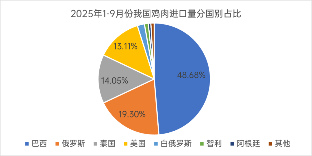 2025年9月鸡肉进口量创6年单月新低,俄罗斯、泰国进口量大增