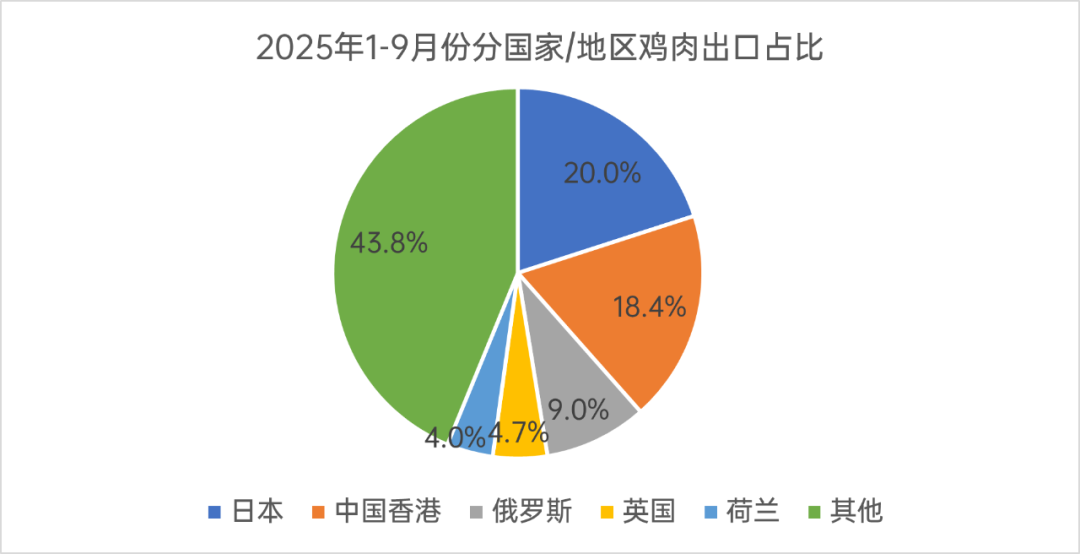 2025年1-9月我国鸡肉分国家/地区鸡肉出口占比