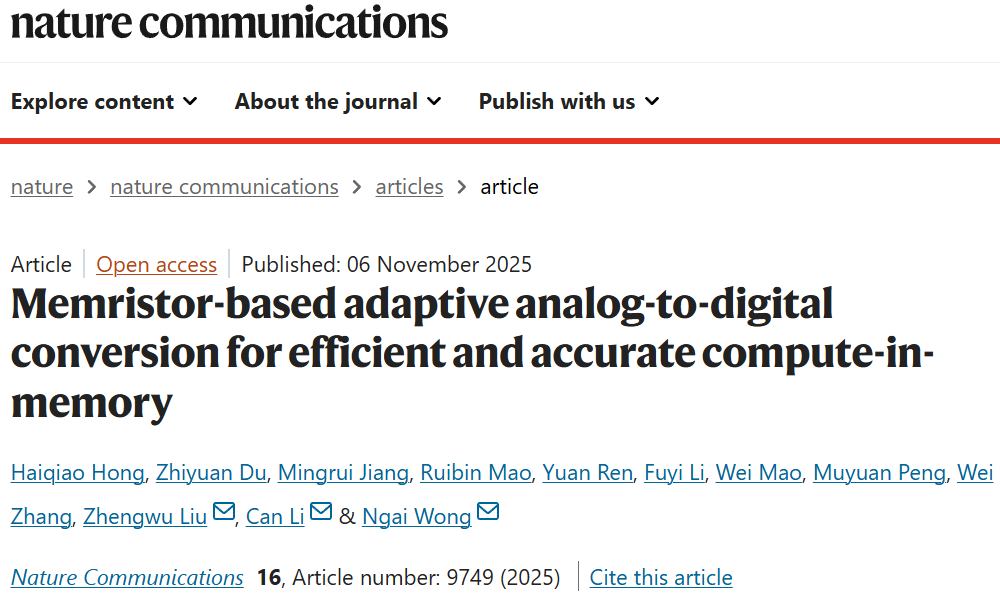 当全球AI算力需求以每年超50%的速度狂奔,芯片“能耗墙”与“存储墙”已成为制约行业发展的核心痛点——传统冯·诺依曼架构下,数据在内存与处理器间的搬运消耗了70%以上的算力。而近期,港大、港科大与西电团队在Nature子刊发表的突破性成果,为这一困局提供了颠覆性解法:利用忆阻器可编程特性开发“智能标尺”,成功将AI芯片功耗锐减57.2%、面积缩小30.7%,彻底攻克了存算一体架构中模数转换器(ADC)“能耗黑洞”(占总能耗87%)的难题。这场由底层元件革新引发的AI硬件革命,正为资本市场打开一条全新的投资主线。