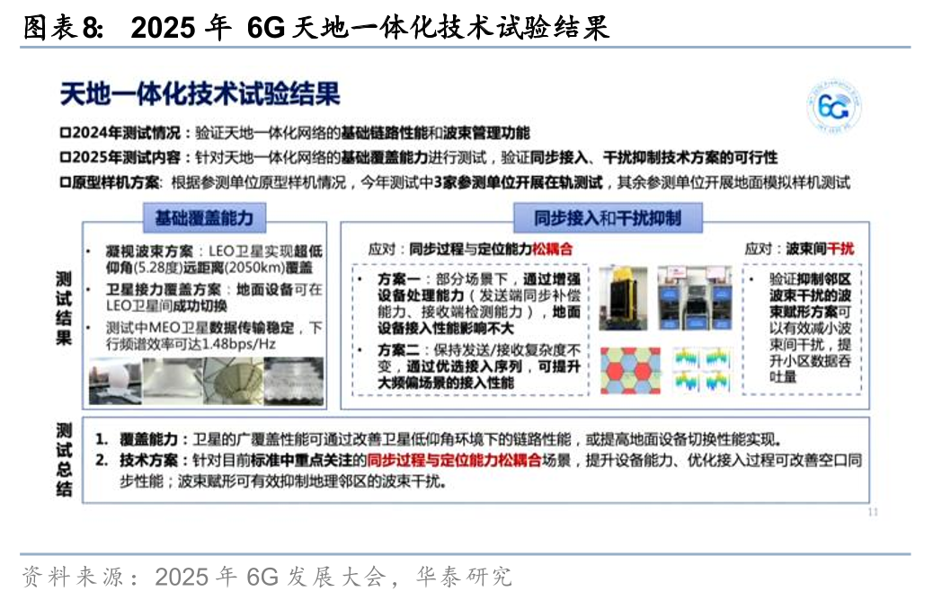 11月13日至14日,2025年6G发展大会在北京经济技术开发区举行,我们观察到以下进展:1)发展趋势上,6G终端、6G通智融合、6G星地融合或将是未来的三大发展方向,推动5G时代的万物互联向6G时代的万物智联演变;2)技术试验方面,我国目前已完成第一阶段6G技术试验并启动技术方案试验,支撑国际标准研制,2025年面向沉浸式通信、通感一体化等5个方向进行了技术试验并取得阶段性成果;3)创新应用方面,银河航天、小米等企业展示了在6G产品方面的创新与进展。