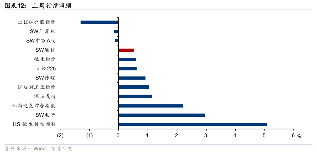 市场方面,上周通信(申万)指数下跌4.77%,同期上证综指下跌0.18%,深证成指下跌1.40%。上周,2025年6G发展大会在北京召开:1)发展趋势上,6G终端、6G通智融合、6G星地融合或将是未来的三大发展方向;2)技术试验方面,2025年面向沉浸式通信、无线智能化、通感一体化、天地一体化、网络架构5个方向进行了技术试验并取得阶段性成果;3)创新应用方面,银河航天、小米等企业介绍了在6G产品方面的创新与进展。我们认为,6G将与AI技术深度融合,未来有望在云侧、端侧孕育多种应用场景,建议关注运营商在云智算/6G产业链的进展以及国产算力相关板块。
