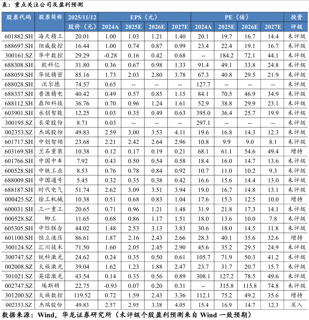我们认为,自动化设备按投资优先级排序如下: