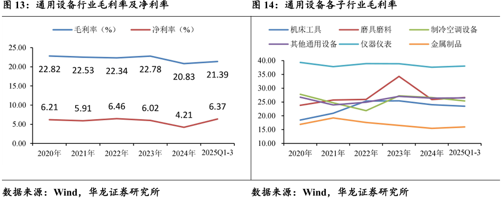 前三季度盈利能力较2024年有所改善,其他通用设备及磨具磨料表现较好。2025年前三季度通用设备毛利率21.39%,净利率6.37%,较2024年全年改善明显。