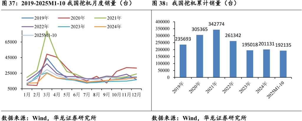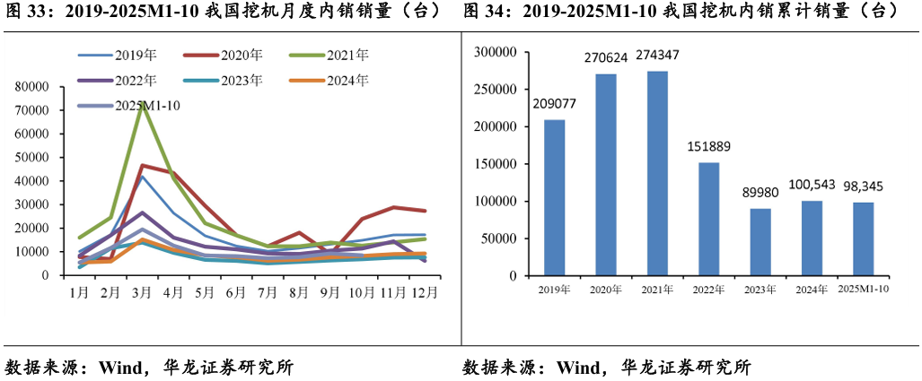 2025年1—10月,共销售挖掘机192135台,同比增长17%;其中, 10月国内销量8468台,同比增长2.44%;1-10月国内销量98345台,同 比增长19.6%。