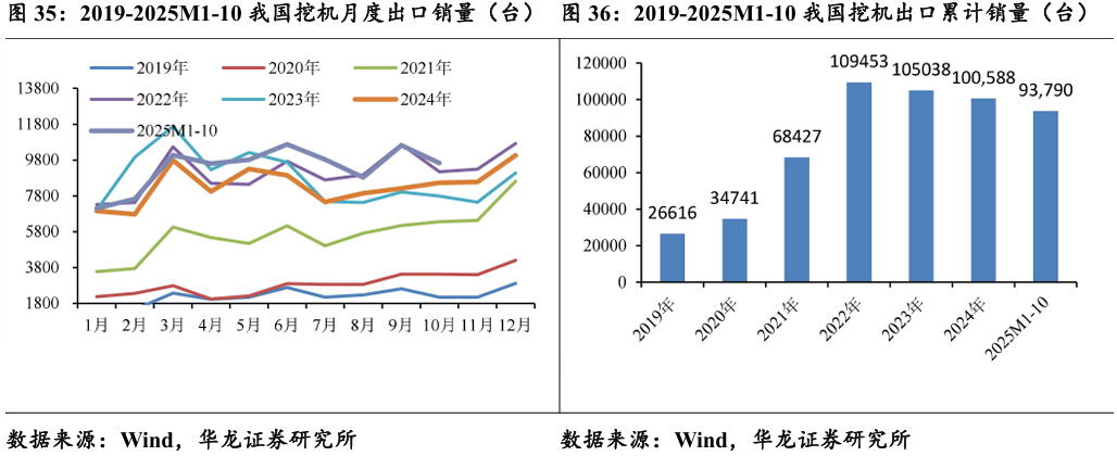 2025年10月我国挖机出口量9628台,同比增长12.9%;1-10月出口93790台,同比增长14.4%。