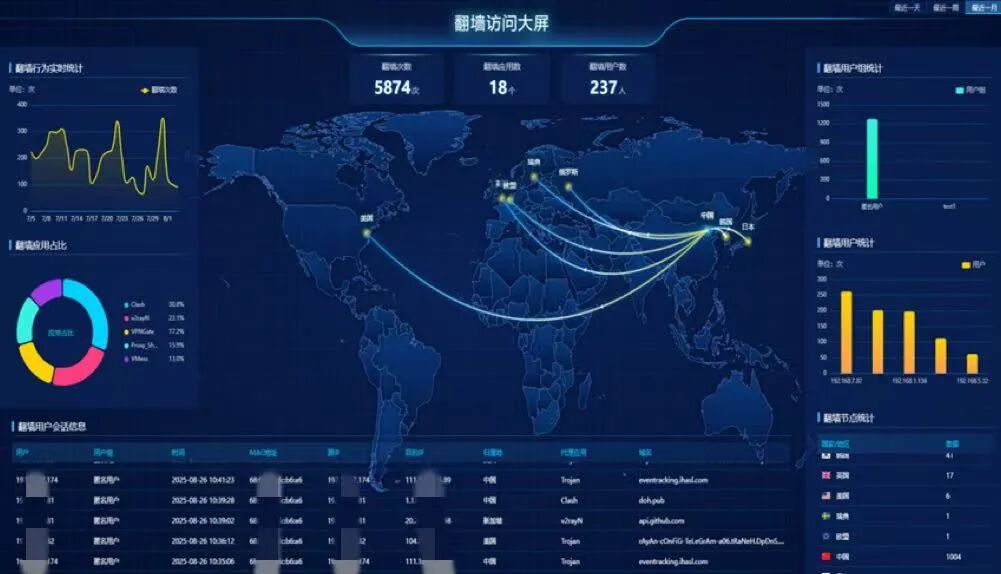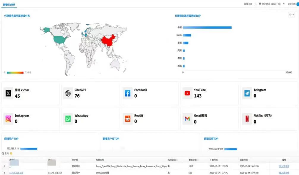 实现对全网访问行为的统一监测,让违规跨境访问企图“看得见、管得住”。