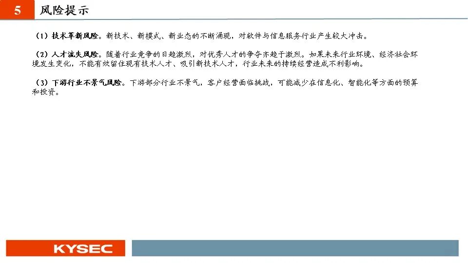 4.风险提示:技术革新风险;人才流失风险;下游行业不景气风险。
