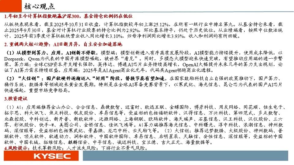注:上述报告内容详见开源证券计算机行业周报20251103:《开源证券_计算机行业2026年年度投资策略_人工智能日新月异,自主安全加速落地_开源计算机团队_2025.11.03》