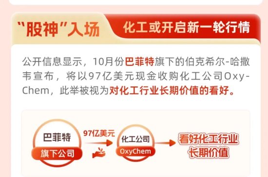进入广告页面,称:“股神入场,化工或开启新一轮行情”。在这里股神入场指的是10月份巴菲特的伯克希尔以97亿美元收购化工公司Oxy-Chem。