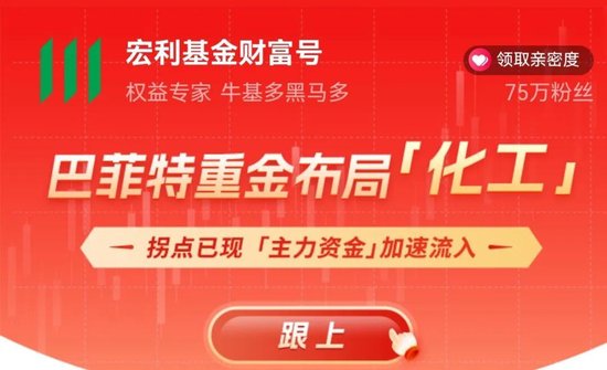 公募基金最重要电商销售平台,支付宝的宏利基金财富号中头条广告赫然是,“巴菲特重金布局化工,拐点已现主力资金加速流入”,“跟上”