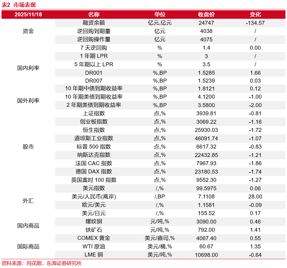 CPI同比上升,PPI同比跌幅连续3个月收窄,PPI-CPI剪刀差扩大。2025年10月CPI同比上升0.2%(环比+0.5pct),去掉食品、能源的核心CPI同比上涨1.2%(环比+0.2pct),连续6个月涨幅扩大。10月PPI同比-2.1%(环比+0.2pct),跌幅连续3个月收窄,得益于国内部分行业供需关系改善;10月PPI-CPI剪刀差为-2.3%(环比-0.3pct)。1)分品类:食品类同比降幅收窄,非食品同比价格五涨一跌。1 >食品类:10月食品类价格同比下降2.9%,环比+1.5pct,影响CPI同比下降约0.54个百分点,其中猪肉和蛋为主要拖累项,分别同比-16.0%、-11.6%。2 >非食品类:10月教育文化和娱乐、衣着、医疗保健、生活用品及服务、居住和交通通信分别同比+0.9%(环比+0.1pct)、+1.7%(环比持平)、+1.4%(环比+0.3pct)、+1.9%(环比-0.3pct)、+0.1%(环比持平)和-1.5%(环比+0.5pct)。