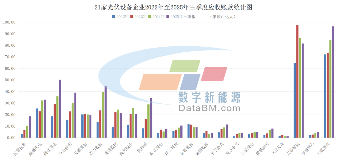 根据三季报数据显示,今年前三季度 21 家设备企业应收账款合计 525.70亿元,同比增长 6.94%,甚至与 2024年末相比高出 10.64%。
