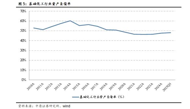 基础化工行业财务指标整体稳健,在建工程规模持续下行。2025年第三季度,基础化工行业资产负债率环比小幅下降,保持在较低水平。行业经营现金流明显改善,固定资产投资力度明显放缓,在建工程规模保持下降态势。行业的存货周转天数同比小幅提升。