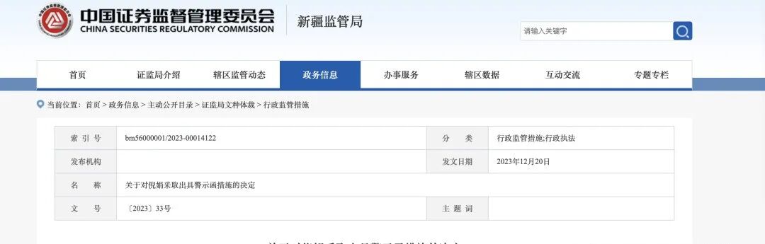 其中包括:2023年12月20日,新疆证监局因其在广汇能源(600256.SH)任职期间配偶进行短线交易,对她采取出具警示函的行政监管措施,2024年1月19日,上交所就同一违规事项对她采取出具警示函的监管措施;以及2024年11月18日,倪娟因在广汇能源担任董事会秘书期间未能勤勉尽责,对该公司违规行为负有责任,受到新疆证监局出具警示函的行政监管措施,并在2025年1月11日遭到上交所通报批评。