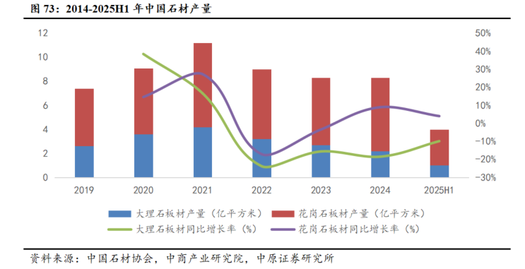 石材产量下降,下游利润减少,线锯类超硬材料制品需求承压。超硬材料制品贯穿于整个石材加工产业链,从最初的石材开采到加工都需要使用大量绳锯、锯片、磨轮、排锯等超硬材料制品。同时,履带式金刚石绳锯机等新式机械装备也在石材行业不断应用。根据中国石材协会统计,2025年上半年我国石材规模以上企业板材产量4亿平方米,同比增长0.1%。其中,大理石板材产量1亿平方米,比去年同期下降9.9%;花岗石板材产量3亿平方米,比去年同期增长4%,增速较2024年同期放缓。规上企业实现营收1346.51亿元,同比下降0.6%,累计实现利润总额70.39亿元,同比下降2.03%。房地产投资下行导致装饰石材需求需求减少,国际贸易冲突摩擦,导致石材出口“量增价减”压力加大。受石材产量减少影响,线锯等超硬材料制品需求减少,同时受石材行业利润率降低,也对超硬材料制品价格产生压制作用。
