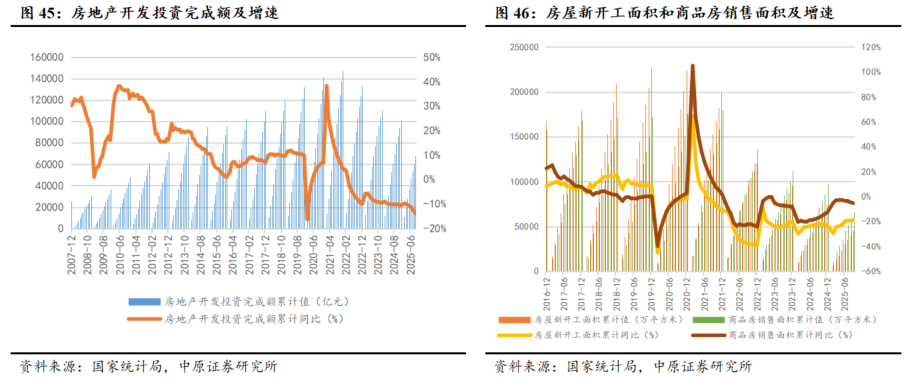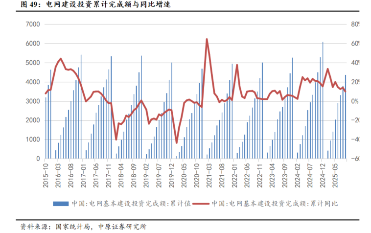 电网投资维持高位,但增速有所回落。2025年国家电网继续加大投资,截至2025年9月,电网投资额累计达到4378亿元,同比增长9.9%。与2024年相比,电网投资增速有所回落,但仍维持高位。国家电网2025年全年投资规模预计将突破6500亿元,南方电网也安排了1750亿元固定资产投资,共同推动基建领域用铝需求稳定增长。此外随着7月雅江水电站项目正式宣布,基建投资增速有望维持平稳,从而推动基建领域用铝需求稳定增长。