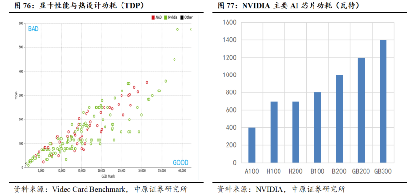 功率密度提升导致高热功耗问题凸显。随着电子元件和系统组件集成度的不断提高,伴随物理尺寸的减小以及封装结构的复杂化,将带来功率密度的急剧提升,特别以SiC、GaN等为代表的宽禁带半导体,其材料可承载更高的电流电压或开关频率,更适用于功率、射频等芯片领域。但存在高热功耗及局部热点(≥ 1kW/cm2)等问题,严重影响其组件性能及可靠性。以英伟达的AI芯片为例,算力的飞跃推动功耗快速攀升。其2025年发布的GB300芯片热设计功耗(TDP)已达1400 W,而下一代Vera Rubin架构芯片的热功耗预计将进一步跃升。高频、高功率运行下产生的热量若不能及时导出,将引发局部过热,导致性能下降、寿命缩短甚至功能失效。