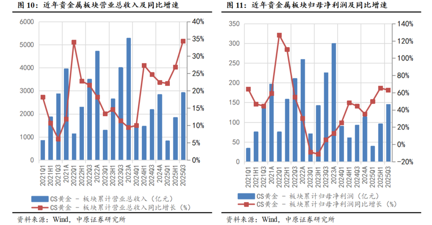 1.3.3. 黄金板块营收增速维持高位运行,归母净利润增速有所加快
