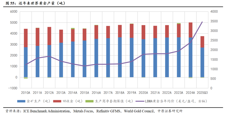 3.1.1. 供给:2025年前三季度全球黄金供应量同比提升