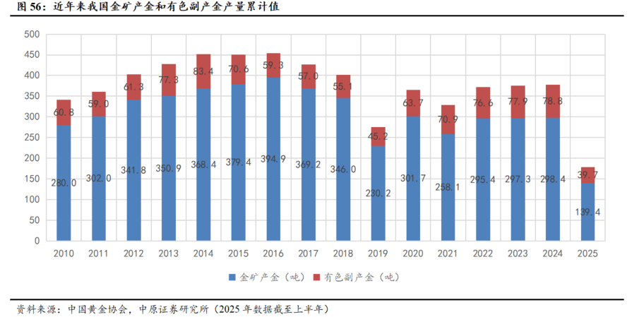 2025年前三季度,我国黄金产量稳步提升。据中国黄金协会最新统计数据显示:2025年前三季度,国内原料产金271.782吨,比2024年同期增加3.714吨,同比增长1.39%。另有进口原料产金121.149吨,同比增长8.94%。国内原料和进口原料共计生产黄金392.931吨,同比增长3.60%。中国黄金产量增长主要系,国内企业进一步降低入选品位,最大限度利用金矿资源所致。同时我国大型黄金集团积极推进“走出去”发展战略,加快黄金并购步伐。2025年前三季度,我国大型黄金集团境外矿山实现矿产金产量61.439吨,同比增长18.39%。此外,辽宁省大东沟金矿初步评审金资源量近1500吨,有望成为继山东胶东金矿之后我国又一个世界级金矿。