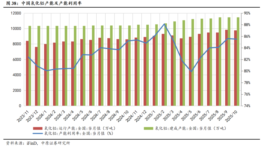 氧化铝供应过剩格局延续,产能利用率提升。