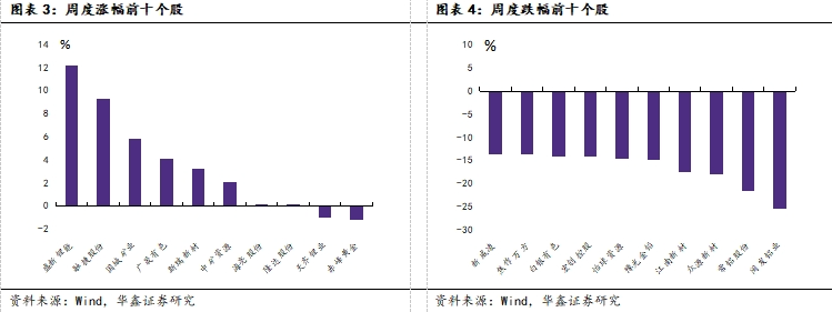 周度涨幅前十个股分别是盛新锂能(+12.16%)、融捷股份(+9.29%)、国城矿业(+5.83%)、广晟有色(+4.14%)、斯瑞新材(+3.25%)、中矿资源(+2.07%)、海亮股份(+0.17%)、隆达股份(+0.17%)、天齐锂业(-0.94%)、赤峰黄金(-1.21%)。
