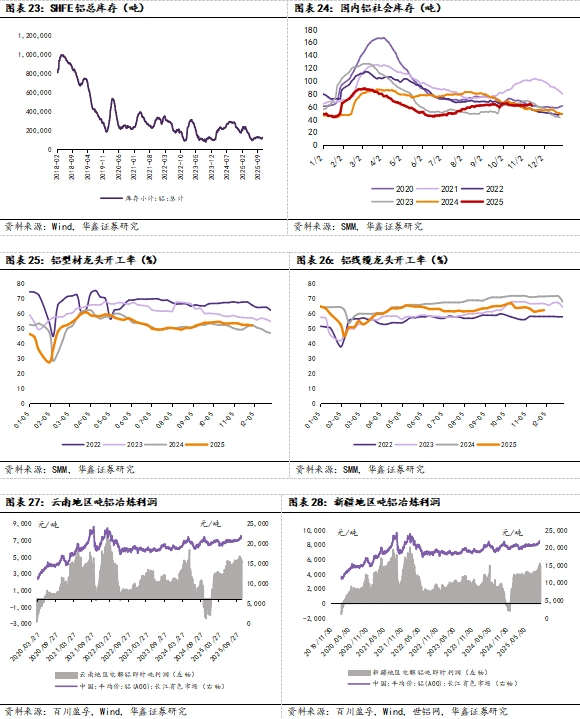 下游方面,国内本周铝型材龙头企业开工率为52.1%,环比-0.5pct;国内本周铝线缆龙头企业开工率为62.4%,环比+0.4pct。
