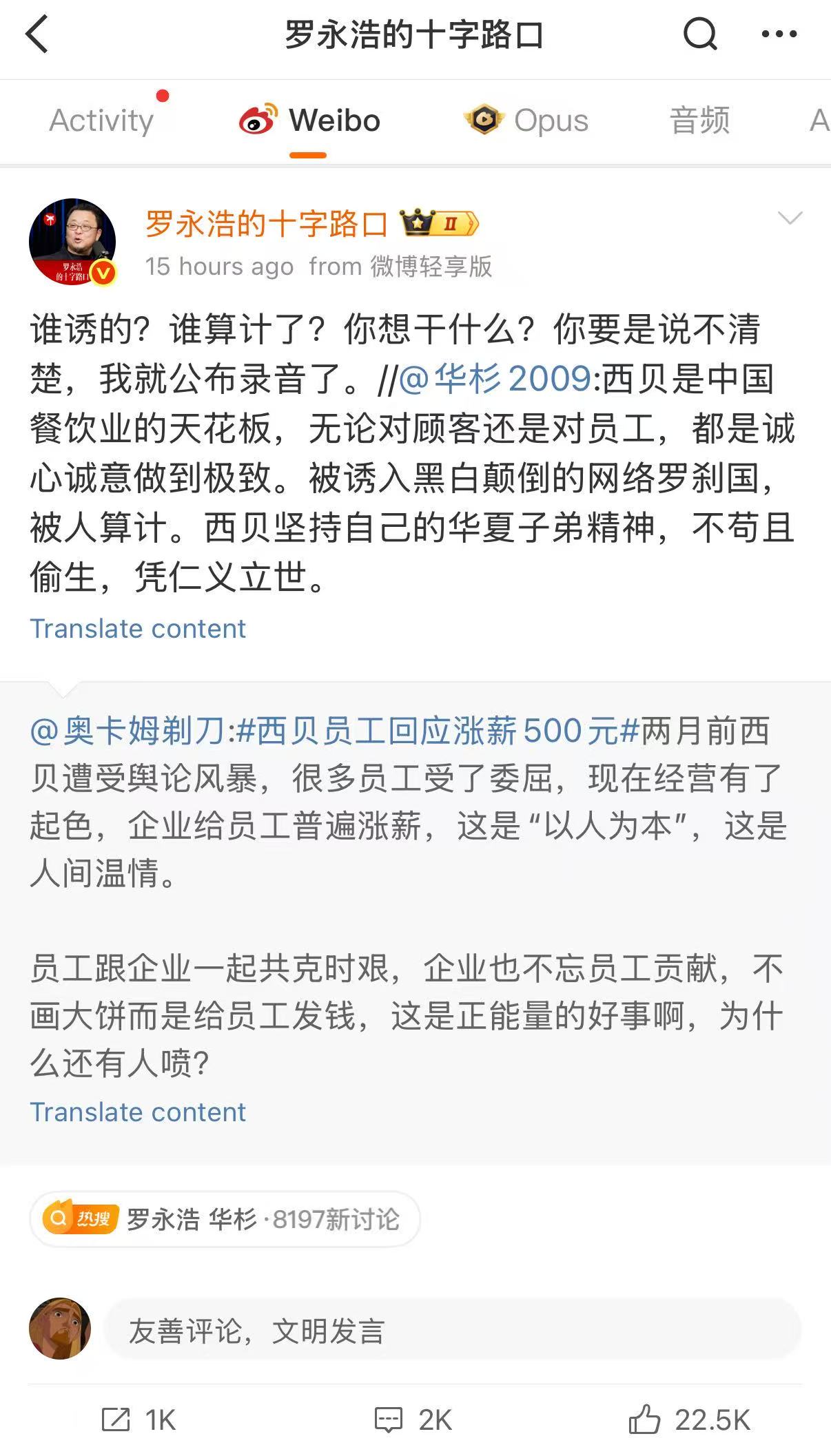这并非罗永浩与华杉的首次交锋。在今年9月的西贝“预制菜”风波中,双方就曾有过冲突。