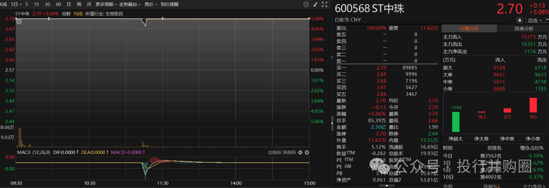 11月以来,ST中珠股价已收获多个涨停,累计涨幅超30%。