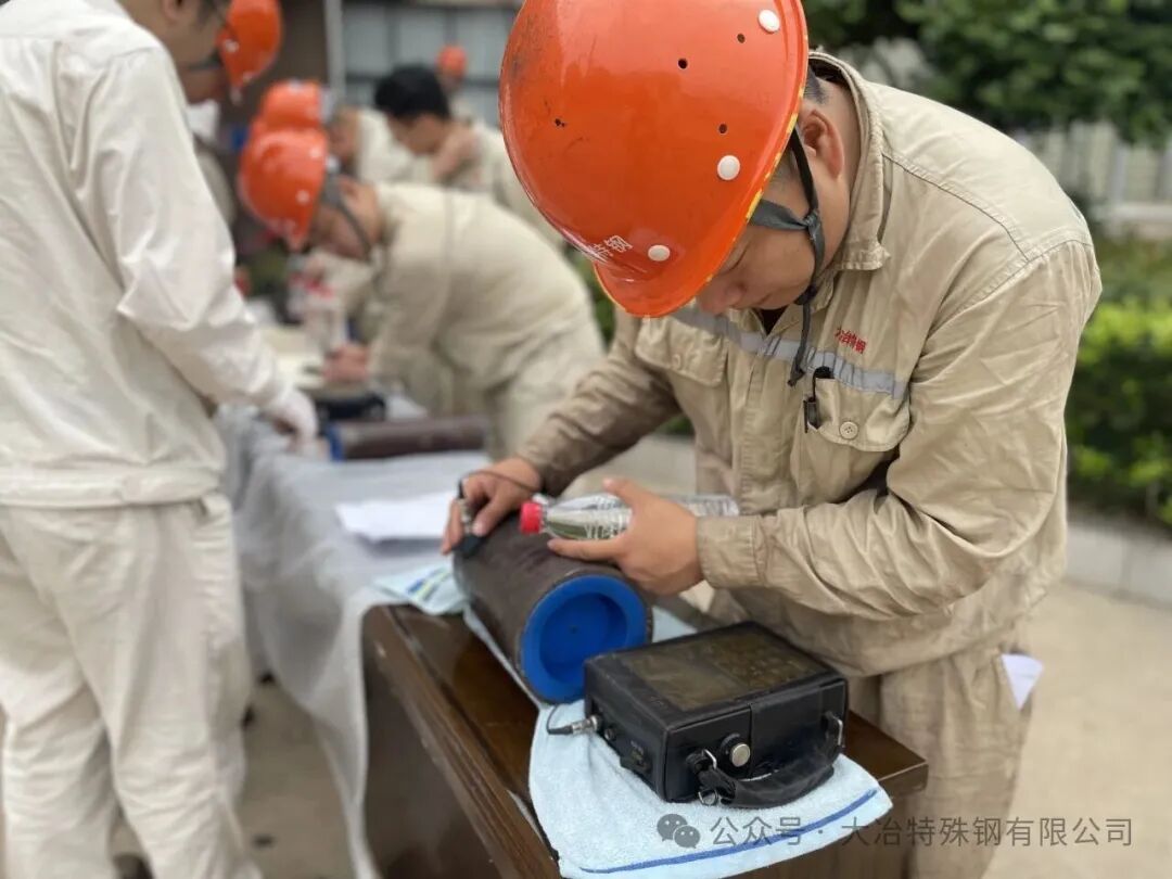 在竞赛组织上,今年的员工技能比武共分为四大类:烧结工、电渣炼钢工、模铸浇铸工、化学分析工4个独有工种;精炼工、加热炉工、电气点检、机械点检、连铸工、探伤工6个通用工种;电工、钳工、天车工3个常规工种,以及1个应急救护技能项目。各工种着重提升解决实际问题的能力,围绕质量月活动,邀请历届“大冶特钢工匠”授课,结合实际生产的瓶颈组织攻关,开展金点子征集;天车工等常规工种,更是立足为省市级技能比赛储备人才,实操比赛设置了精准绕行、稳当定点落钩等一系列高难度动作,不仅考验选手们日积月累的操作手感,更挑战着他们在复杂环境下的心理素质与应变能力。