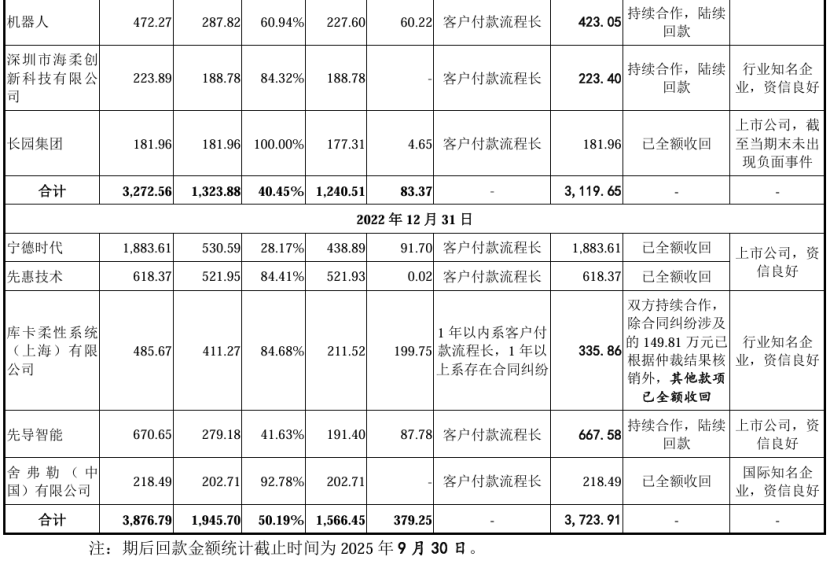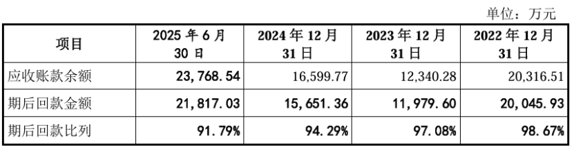 截至2025年6月末,公司应收账款期后回款情况如下:
