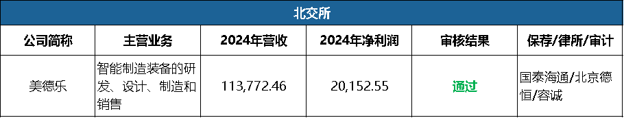 11月27日,大连美德乐工业自动化股份有限公司(874489)IPO申请获得北交所上市委审核通过。