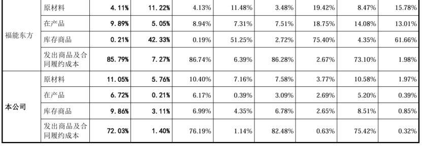 公司可比公司中怡合达对半成品和库存商品进行广泛和持续性的备货,博众精工对作为产品的核心零部件进行备货,先导智能、宏工科技、福能东方(维权)及公司则主要对通用性较强的零部件或标准构件进行备货,因此怡合达、博众精工存货余额中库存商品占比高于其他公司。由于备货的库存商品不直接与订单对应,后续无法形成销售的可能性相对高于有订单支持的库存商品,因此备货比例较高的怡合达、博众精工对库存商品的存货跌价准备计提比例较高。