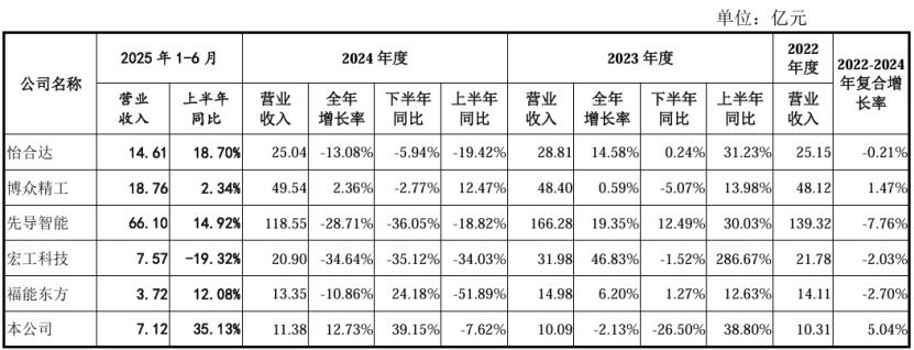 报告期各期,公司主营业务收入分别为102,846.48万元、100,575.44万元、113,444.98万元和70,942.77万元,净利润分别为22,365.12万元、20,785.15万元、21,255.23万元和15,234.72万元。报告期内,在下游新能源等行业需求有所波动的背景下,公司收入整体保持较高规模并实现波动增长,2022年度至2024年度净利润受收入结构变化、信用减值损失波动、研发投入加大等因素影响小幅下降。报告期内,公司主要客户先导智能、海目星、今天国际等自身经营业绩出现波动或下滑,主要客户比亚迪、今天国际等对公司产品的采购需求亦出现波动或下降。公司未来经营业绩会受到下游行业需求、客户自身经营、行业市场竞争、原材料价格、人工成本等多种因素影响,若上述一项或多项因素发生不利变化,可能导致公司未来经营业绩面临下滑的风险。