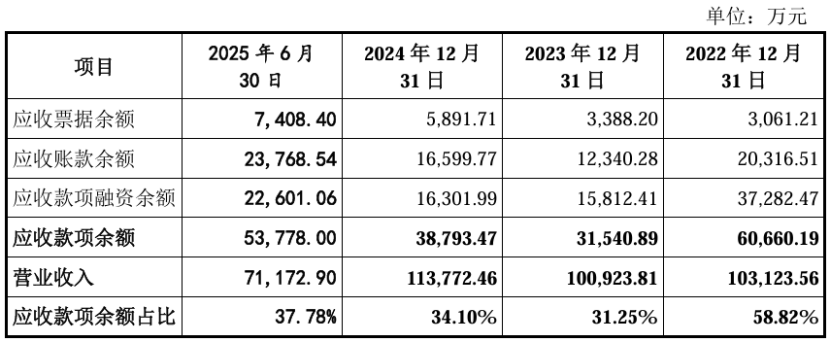 大连美德乐工业自动化股份有限公司主营智能制造装备的研发、设计、制造和销售业务,主要产品为模块化输送系统和工业组件。公司第一大股东张永新直接持有并控制公司46.15%的股份,且担任公司的董事长、总经理,能够对公司股东会、董事会的决议产生重大影响,为公司控股股东、实际控制人。报告期内,公司营业收入分别为103,123.56万元、100,923.81万元、113,772.46万元和71,172.90万元,扣非归母净利润分别为22,188.61万元、19,707.38万元、20,152.55万元和14,731.58万元。2025年6月末,公司存货逾11亿;应收款项余额逾5.3亿;业绩下滑风险被交易所关注。