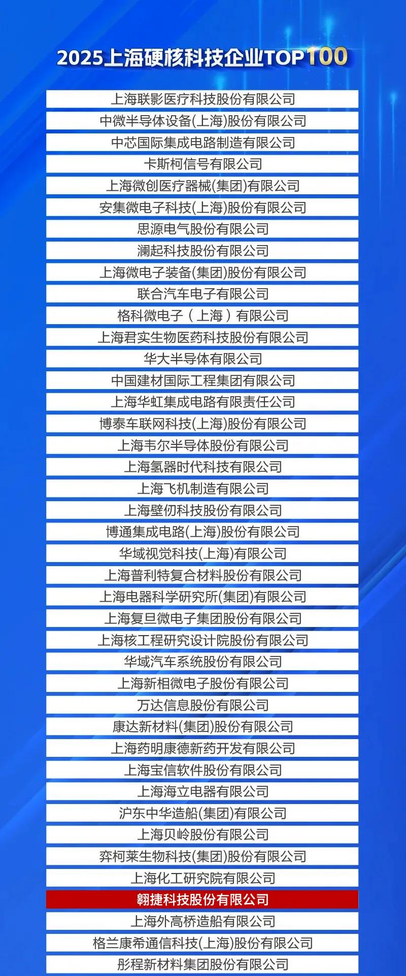 硬核科技代表面向未来产业、具备核心技术突破与产业带动能力的关键技术,是新兴产业发展的引领力量,也是城市科技竞争力的重要标尺。近日,由上海市产业技术创新促进会联合上海市科学技术协会等共同发布的2025年上海硬核科技企业TOP100榜单揭晓,翱捷科技成功入选此次榜单,这也是自上海市2023年首次发布硬核科技企业TOP100榜单后,公司连续第三年入选该榜单。