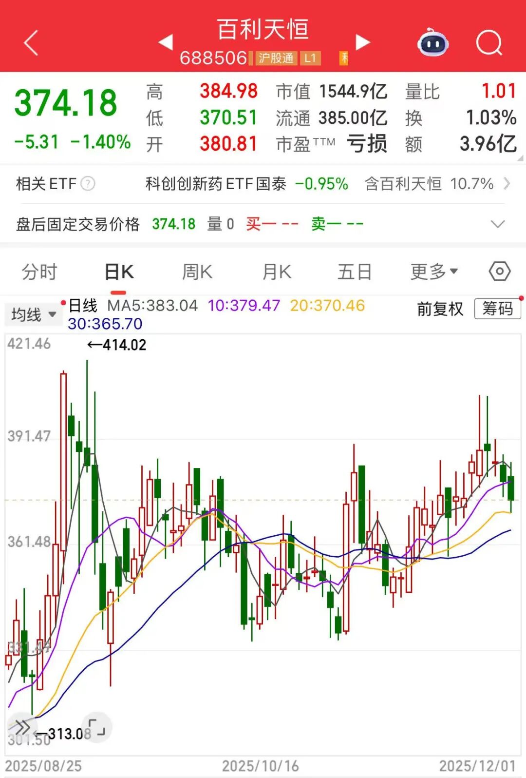 二级市场方面,截至12月1日收盘,百利天恒报374.18元/股,总市值1544.9亿元。