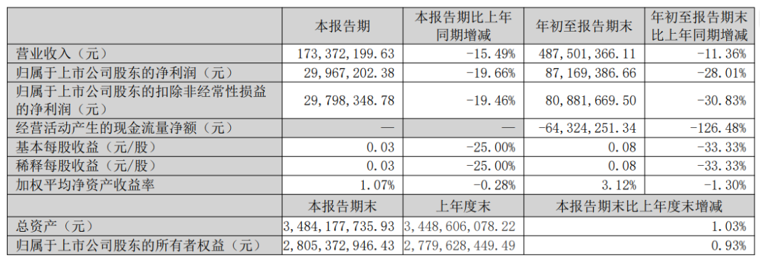 业绩方面,今年前三季度,利君股份实现营业收入4.88亿元,同比下降11.36%;归母净利润8716.94万元,同比下降28.01%。
