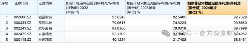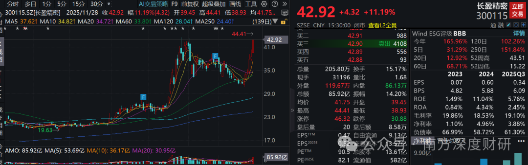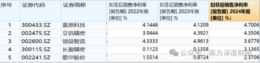 就扣非净利率情况来看,公司的净利率在2024年实现大幅提升,但这个水平在五家公司中处于中等水平,低于蓝思科技(4.70%)和立讯精密(4.35%)。这反映出长盈精密在期间费用的控制方面,与头部公司相比仍有提升空间。