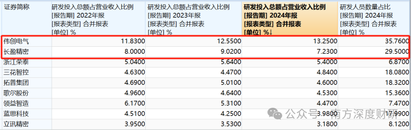 而且,2022年至2024年,长盈精密的研发投入占收入比例均保持在较高水平,且高于明星机器人公司。除了在消费电子产品,新能源产品领域等传统优势项目持续投入外,在人形机器人零部件、半导体设备等战略性新兴领域也加大了研发投入。