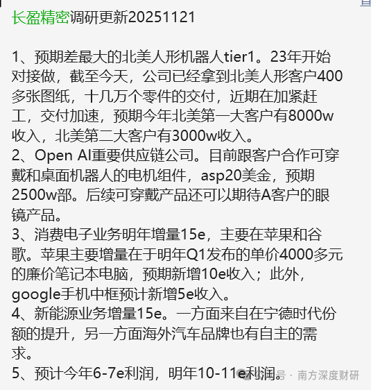 目前公司主营业务是消费电子和新能源双支柱+人工智能的发展格局。消费电子和新能源是稳健基本盘,而机器人业务是公司的成长天花板。