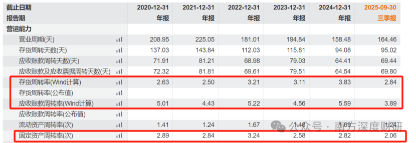 从各项核心资产的周转率情况来看,长盈精密在2024年的营运效率得到全面优化。2025年三季度的各项指标有所回落,很可能与公司近两年为拓展新能源、机器人等新业务而进行的大规模资本开支和产能建设,新投入的产能尚未完全形成规模收入,导致周转率暂时性下降有关,存货周转率及应收款项周转率略有下滑则属于正常的季度波动。