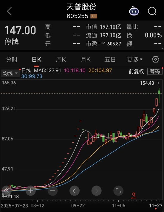 此前,11月27日晚间,天普股份公告称,公司股价自8月22日至11月27日累计上涨451.80%,其间已累积巨大交易风险,现已严重偏离上市公司基本面。因此就近期股票交易情况进行停牌核查。