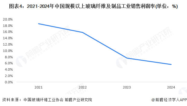——2024年中国规模以上玻璃纤维行业销售利润率下降至5.6%