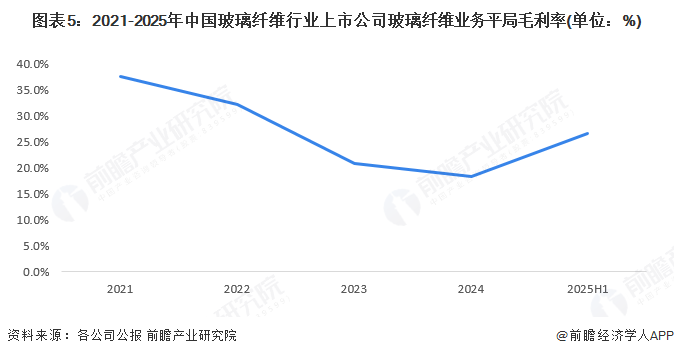 ——2025上半年中国玻璃纤维上市公司玻璃纤维业务平均毛利率上升