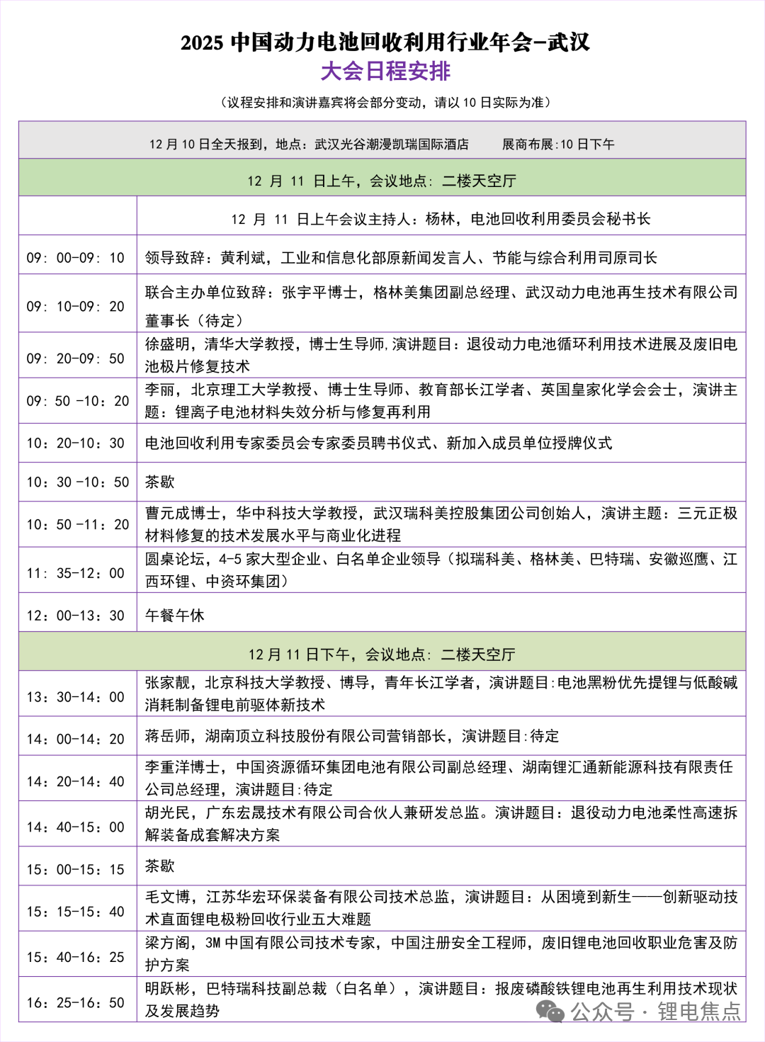 【最新议程】12月11日2025中国动力电池回收利用行业年会