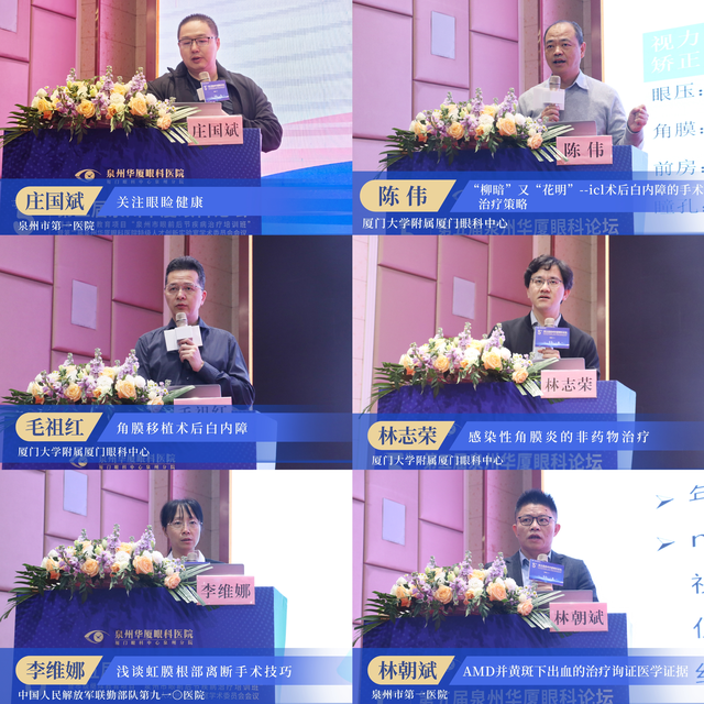 本次论坛广邀眼科领域众多知名专家,厦门大学附属厦门眼科中心吴护平教授、潘美华教授、王玉宏教授、陈伟教授、毛祖红教授、林志荣教授、曾宗圣教授等;厦门大学眼科研究所李程教授;厦门大学附属第一医院李世迎教授、陈焓教授;福建医科大学附属第二医院胡建民教授、吴瑜瑜教授、高莹莹教授;福州眼科医院叶向彧教授;泉州市第一医院林朝斌教授、庄国斌教授、陈伟芳教授;联勤保障部队第九一〇医院李维娜教授、徐建锋教授、钟福炉教授;泉州儿童医院谢江斌教授、施劲瑜教授;晋江市安海医院李良文教授;以及泉州华厦眼科医院的张广斌教授、李学喜教授、董诺教授、庄建福教授、李勇教授、揭黎明教授、林力平教授、罗瑶琴教授、郭威教授等四十余位专家齐聚一堂。