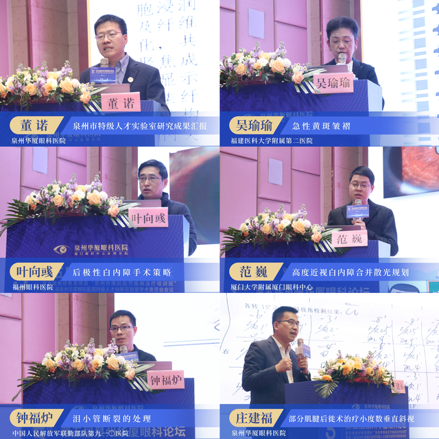 (王建生先生、黄礼能先生、吴瑜瑜教授、张广斌教授、董诺博士、李学喜教授、崔鑫女士一同启动仪式)泉州华厦眼科医院特级人才创新实验室自2023年成立以来,在市委、市政府人才政策的指引与市科协的持续扶持下,先后承担了多项省市级科研项目,在国际权威期刊发表高质量学术论文10余篇;在技术攻关等方面取得了丰硕成果,充分展现了特级人才平台的创新活力与科研实力。董诺教授会上结合临床案例分享《泉州市特级人才实验室研究成果汇报》。